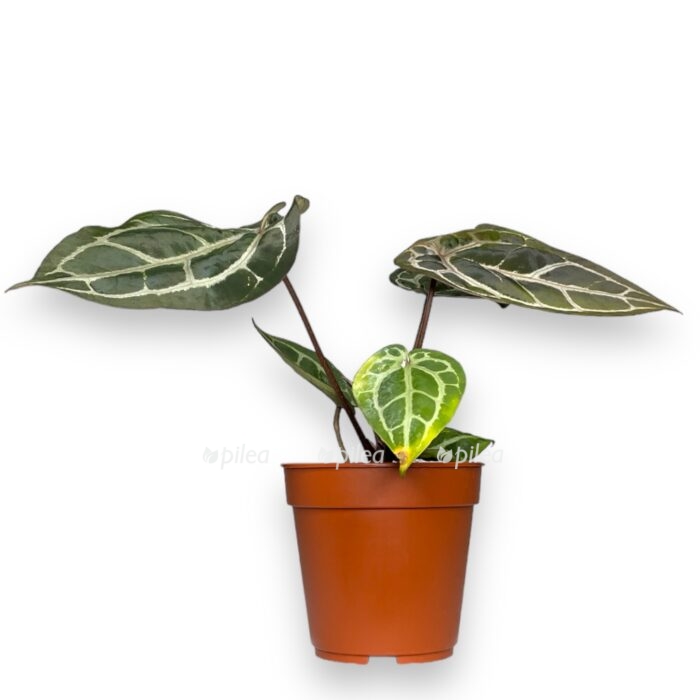 Anthurium Brown Derby — коллекционный бархатный антуриум с плотными сердцевидными листьями и выразительными светлыми прожилками. Молодые листья раскрываются с тёплым коричнево-бордовым оттенком, затем постепенно темнеют, сохраняя глубокий, насыщенный тон. Контраст прожилок делает лист словно подсвеченным изнутри.