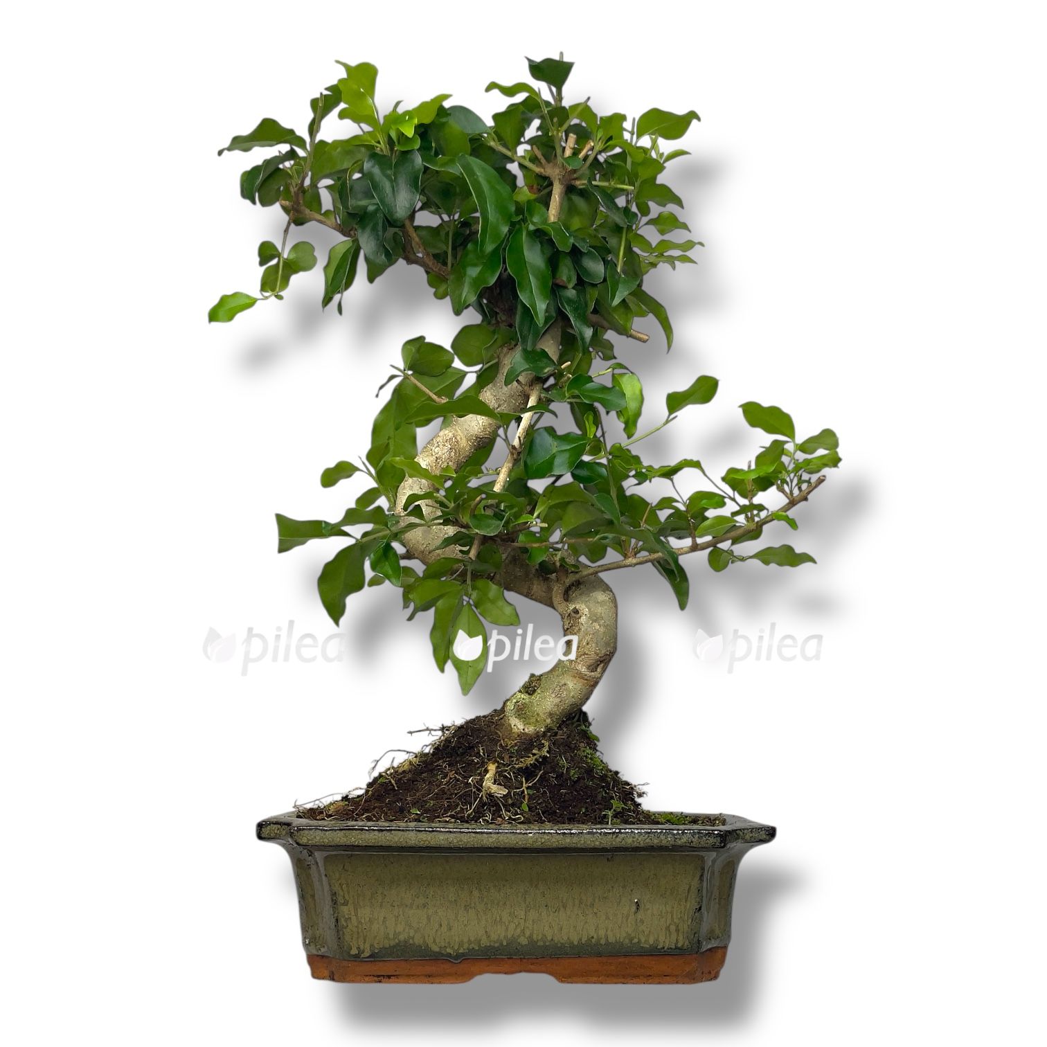Bonsai Ligustrum (Лигуструм) — классическое мини-дерево с густой зелёной листвой и аккуратной кроной. Листья мелкие, плотные, насыщенно-зелёные, легко поддаются формированию, благодаря чему растение сохраняет красивую форму.