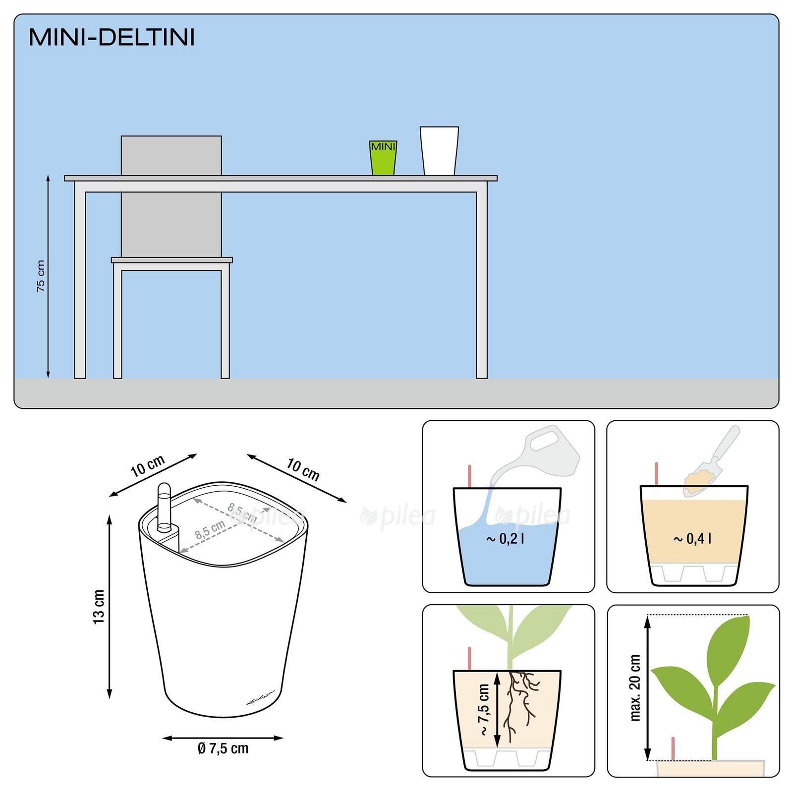 МодельДельтини | Deltini совместима с системой автополива Лечуза | Lechuza, поэтому её можно использовать как обычное кашпо или как часть умной системы полива. Это удобно для фиалок, фиттоний, хой, суккулентов и других небольших растений.