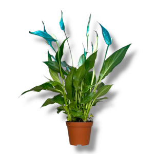 Спатифиллум Шопен крашеный — оригинальная разновидность популярного цветущего растения «женское счастье». Классические белые соцветия искусно окрашены в яркие декоративные оттенки, что делает растение необычным акцентом в интерьере. Глянцевые зелёные листья и цветы в насыщенных тонах создают эффектный контраст и живую динамику.